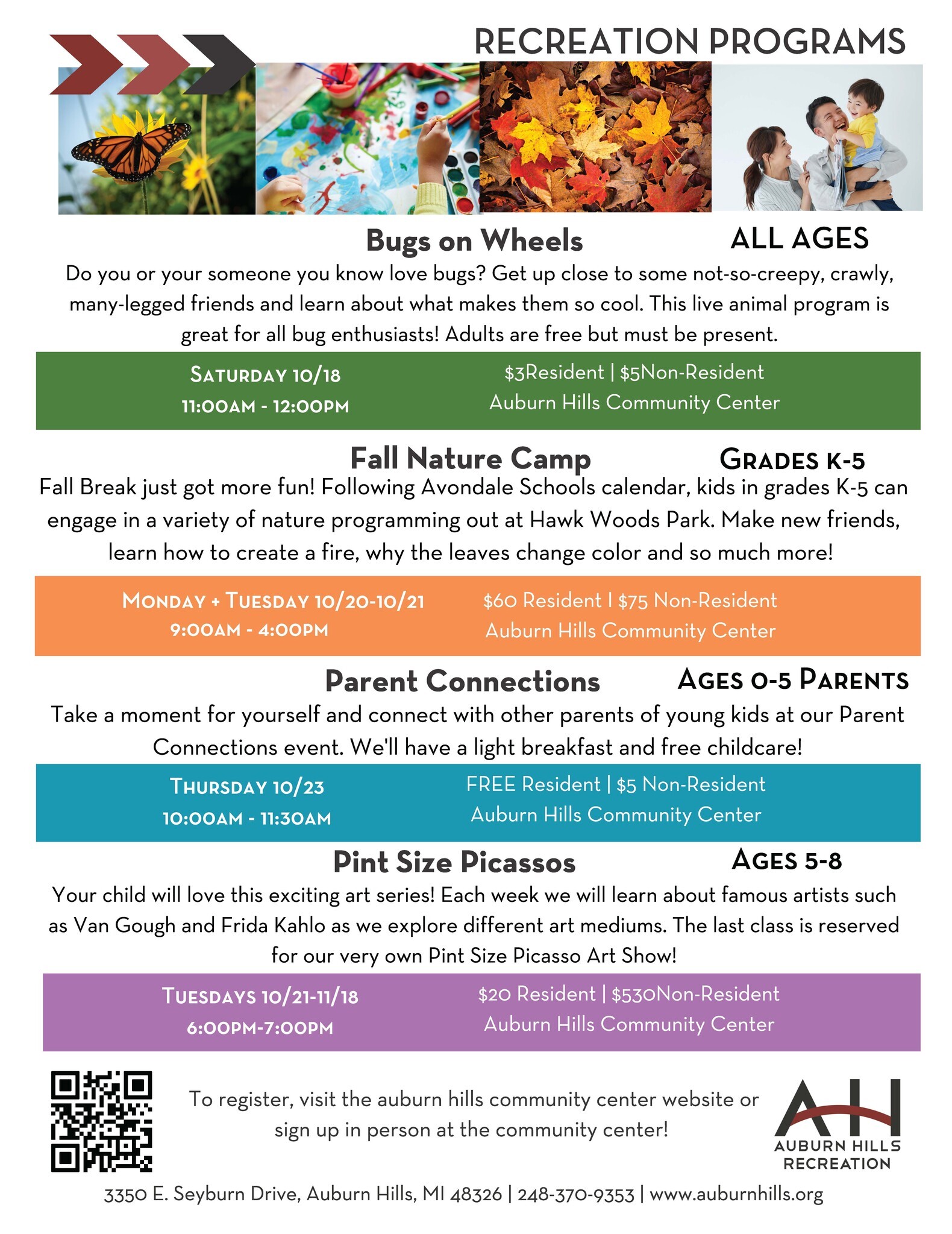 - 10/21-11/18 (Tuesdays): Pint Size Picassos, 6pm-7pm