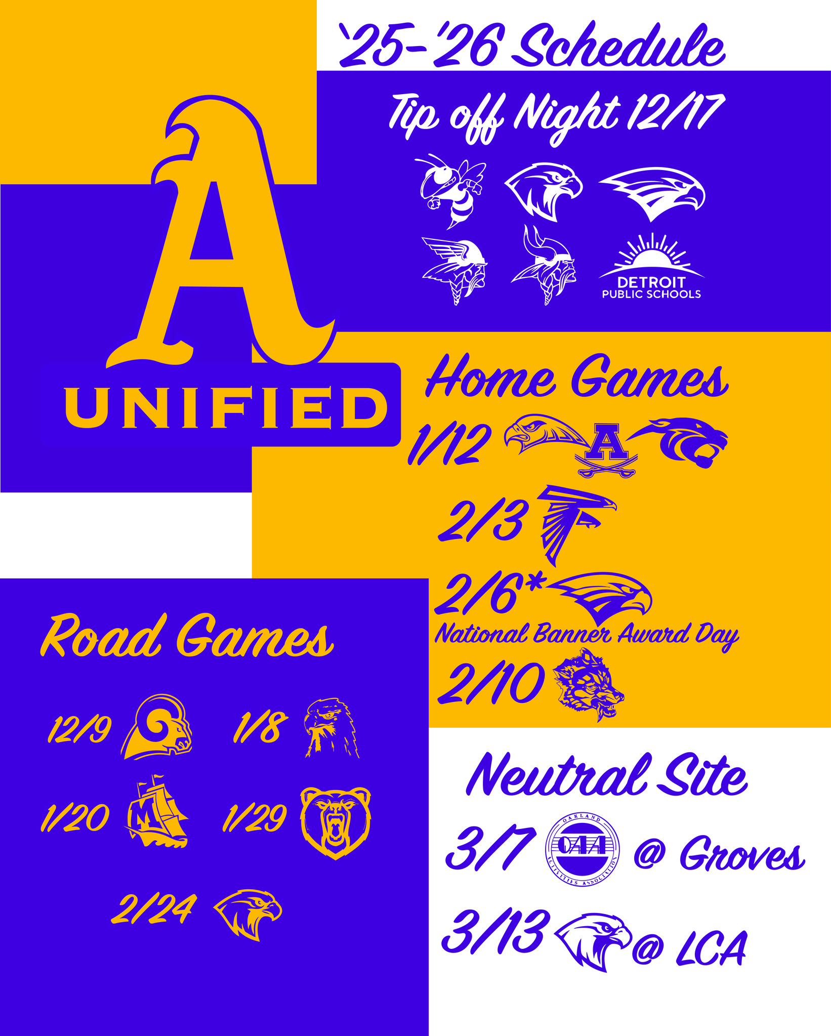 - Feb 6: Unified Basketball Home Game at Avondale (National Banner Award Day)