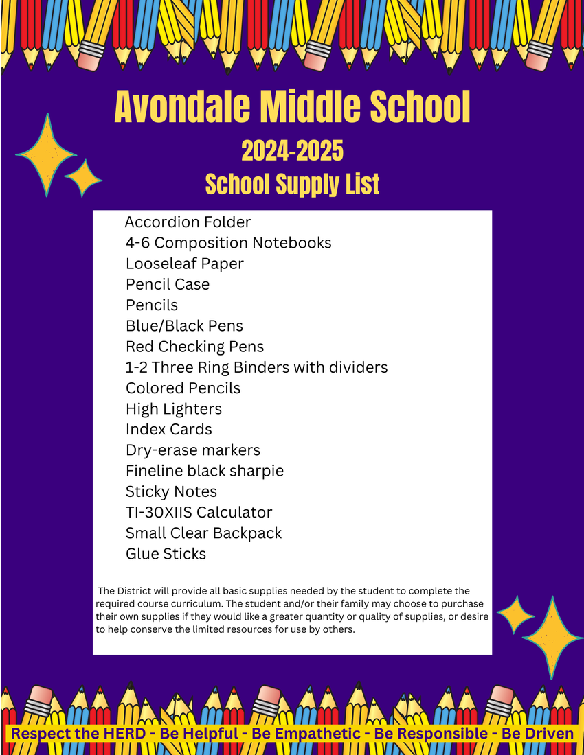 We are passionate about guiding students to be the best learners, friends, teammates, and citizens they can be. At Avondale Middle School, we teach our students to Respect the HERD by being: